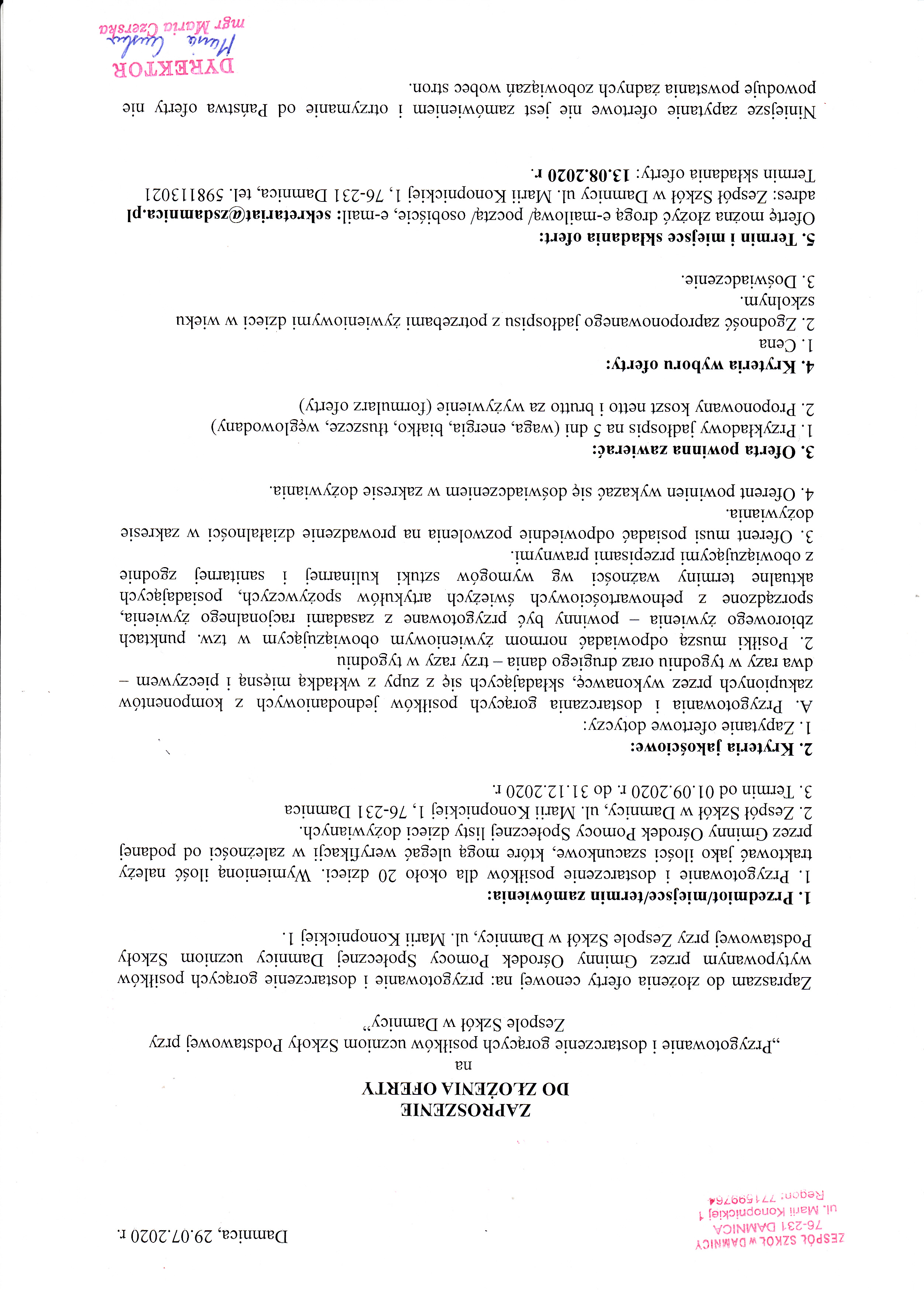 Przygotowanie i dostarczenie gorących posiłków uczniom Szkoły Podstawowej przy Zespole Szkół w Damnicy